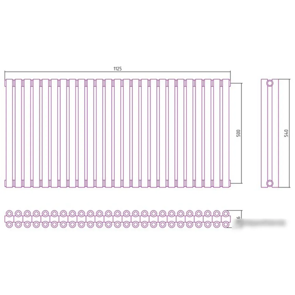 стальной трубчатый, боковое/нижнее подключение, высота: 540 мм, межосевое расстояние: 500 мм