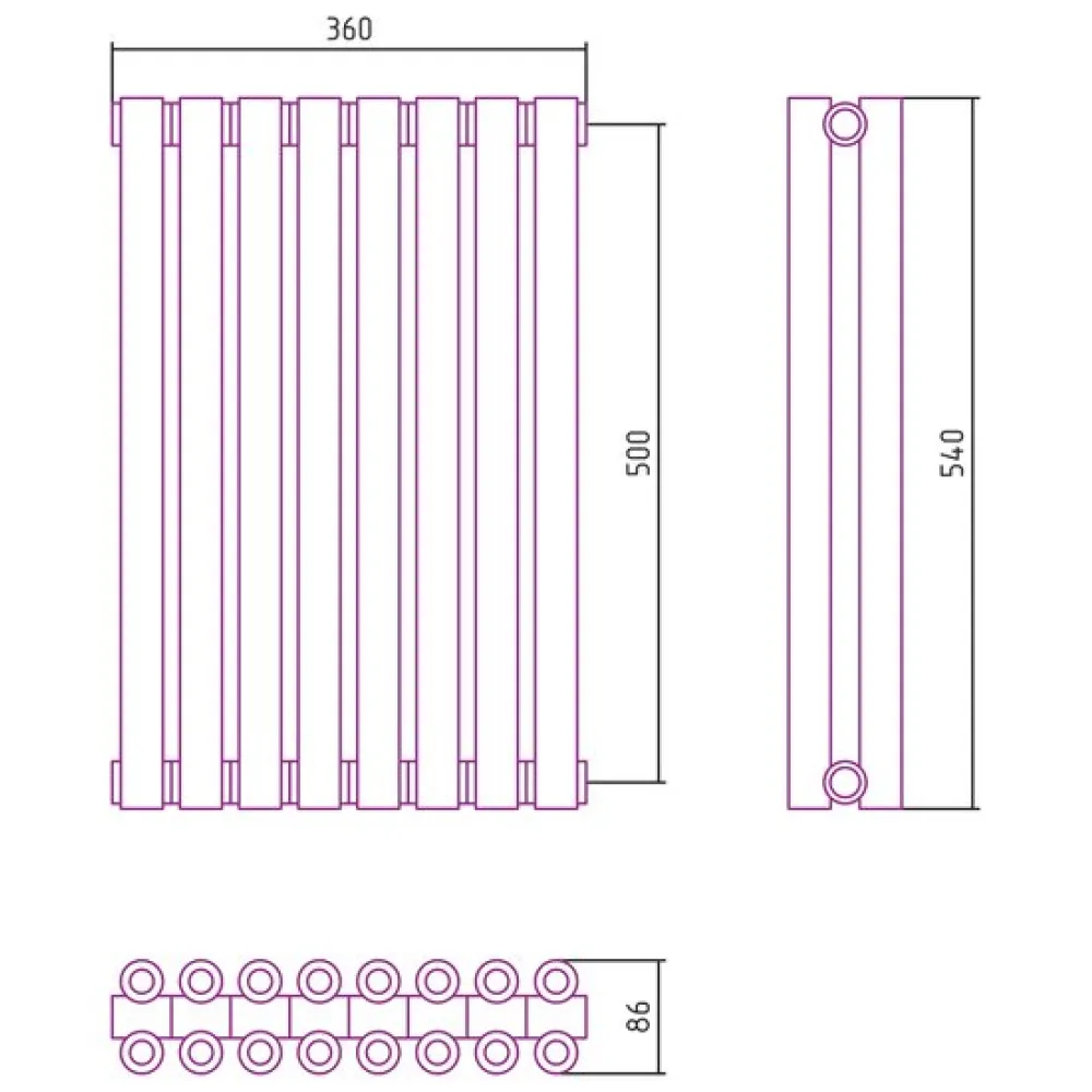 стальной трубчатый, боковое/нижнее подключение, высота: 540 мм, межосевое расстояние: 500 мм