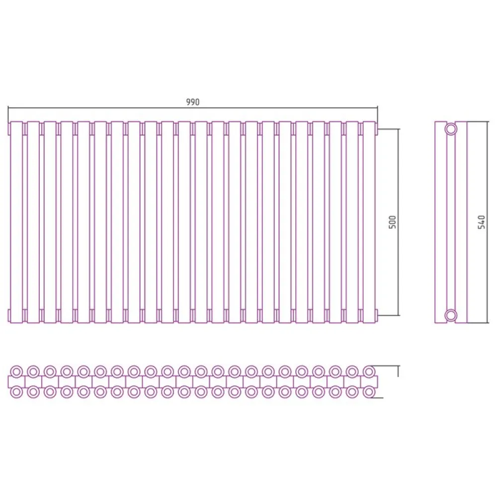 стальной трубчатый, боковое/нижнее подключение, высота: 540 мм, межосевое расстояние: 500 мм