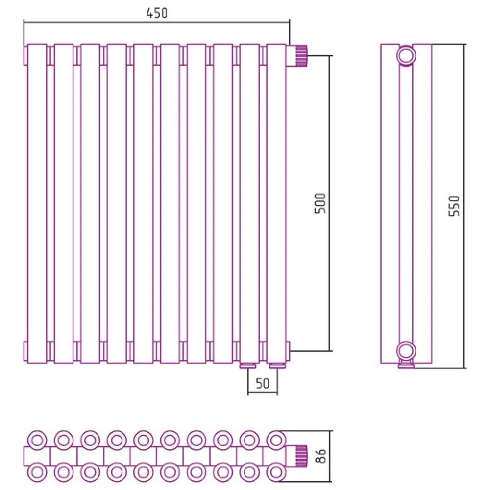Тип: стальной трубчатый , Подключение: нижнее , Высота: 550 мм, Посадочное (межосевое) расстояние: 50 мм, Посадочный диаметр: 3/4 "