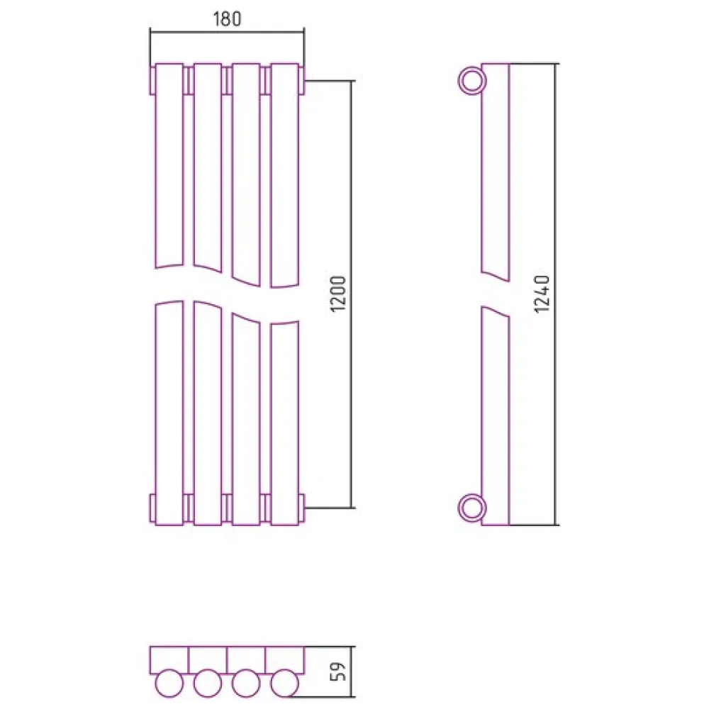 стальной трубчатый, боковое/нижнее подключение, высота: 1240 мм, межосевое расстояние: 1200 мм