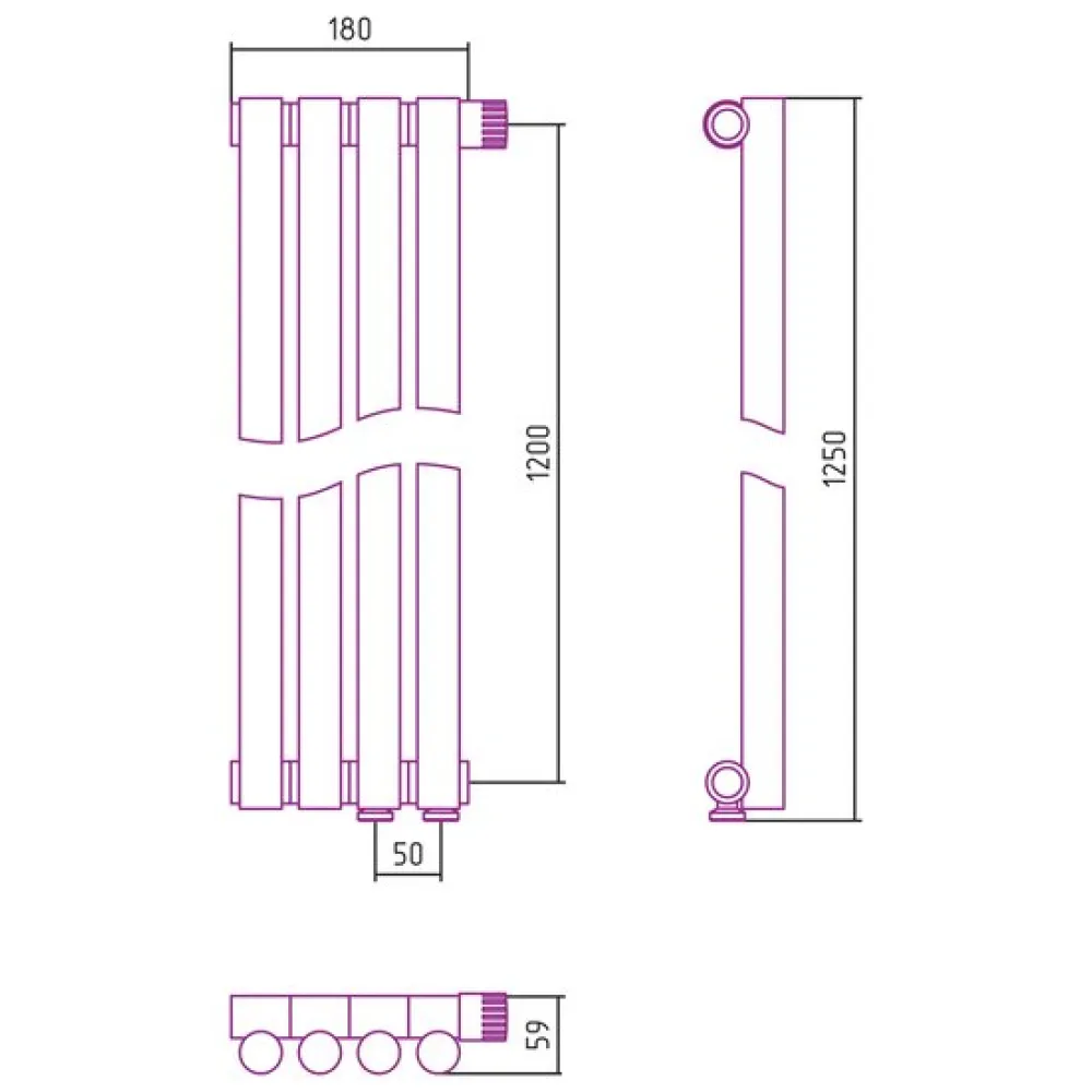 Тип: стальной трубчатый , Подключение: нижнее , Высота: 1250 мм, Посадочное (межосевое) расстояние: 50 мм, Посадочный диаметр: 3/4 "