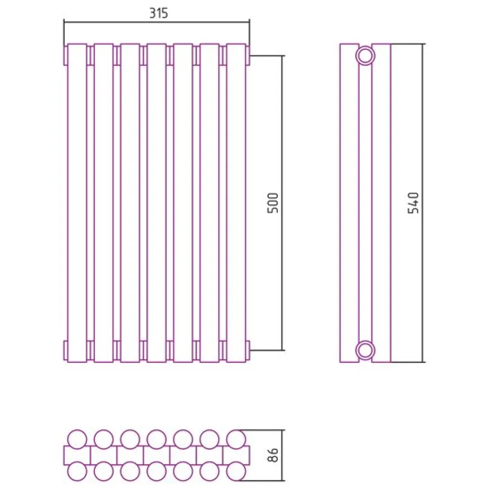 стальной трубчатый, боковое/нижнее подключение, высота: 540 мм, межосевое расстояние: 500 мм