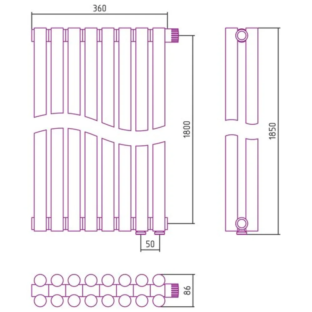 Тип: стальной трубчатый , Подключение: нижнее , Высота: 1850 мм, Посадочное (межосевое) расстояние: 50 мм, Посадочный диаметр: 3/4 "