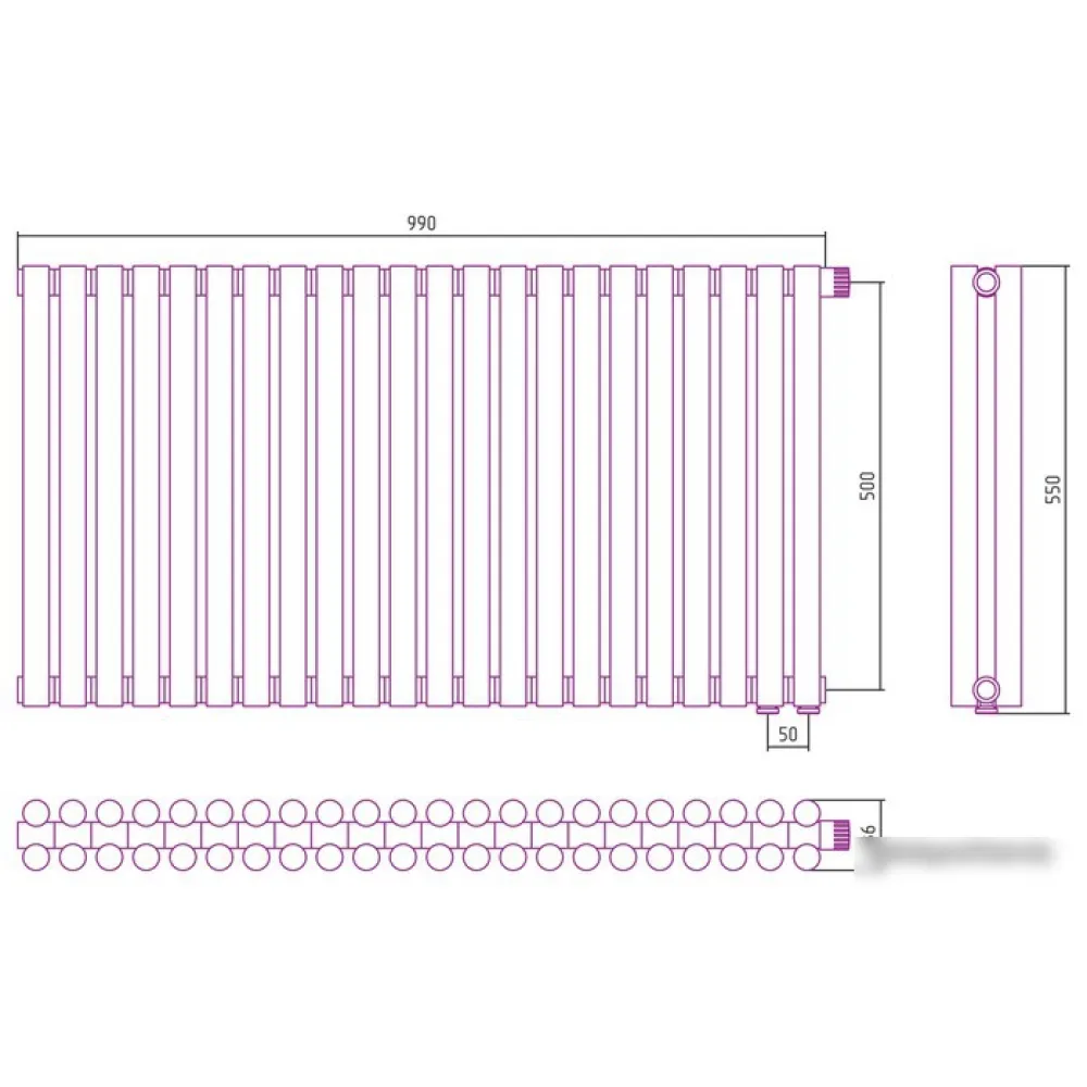стальной трубчатый, боковое подключение, высота: 550 мм, межосевое расстояние: 50 мм