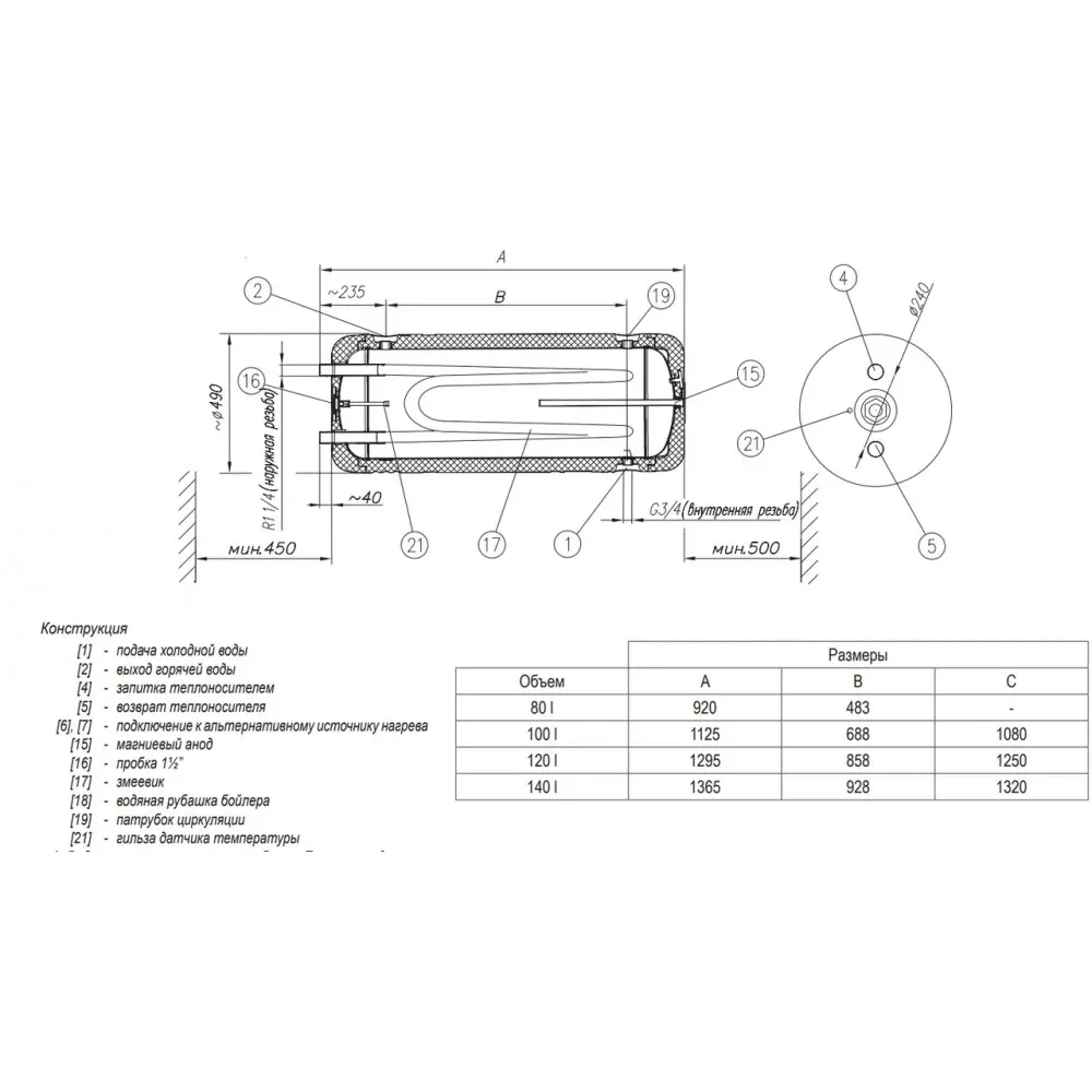 | Тип | бойлер косвенного нагрева |