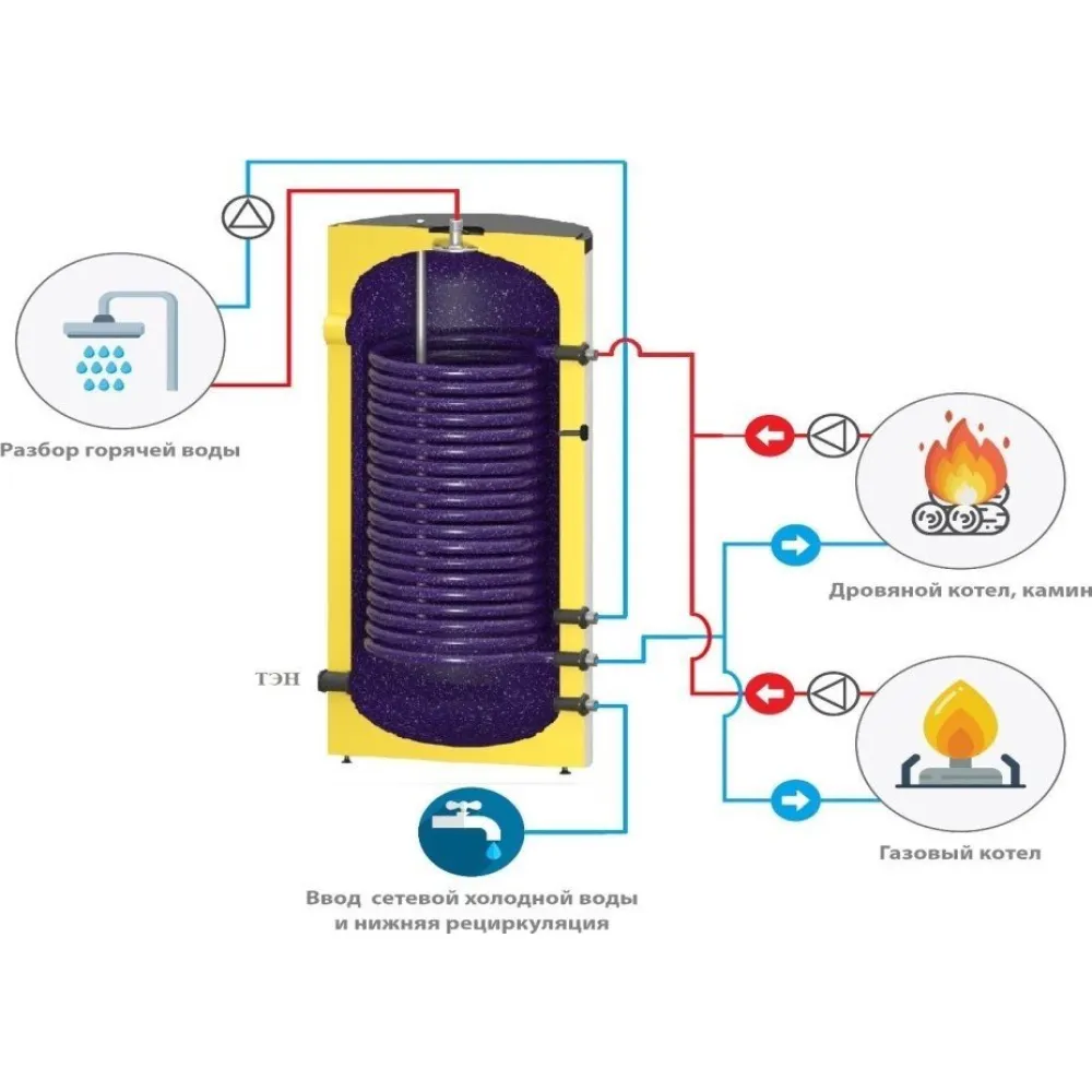 | Информация | Область применения: Накопление и аккумулирование нагретой санитарной воды Материал изделия: Углеродистая сталь с эмалированным покрытием. Описание: Эмалированный бак косвенного нагрева ГВС с одним увеличенным ТО от 29 до 63 кВт, с рециркуляцией, гильзой для датчика температуры и термометром. С ревизионным фланцем для очистки бака и ревизии, а так же отверстием 1 1/2- для установки ТЭНов. В комплекте магниевый анод, регулировочные ножки и упаковка. Бак может совместно работать со следующими источниками тепла: Твердотопливный котел Котёл на биомассе Пеллетный котёл Камин с водяной рубашкой Газовый котел Электрический котёл Солнечный коллектор Изоляция бака Бак 150 литров-200 литров включительно, несъемная жесткая пенополиуретановая изоляция средней толщиной — 40 мм (коэффициент теплопроводности 0,028 Вт/м*С). Опционально доступно: Изменение конструкции бака по чертежу заказчика (расположение патрубков подключения, фланцы, диаметры подключений, тип и толщина изоляции, площадь теплообменника и так далее) – рассчитывается индивидуально. |