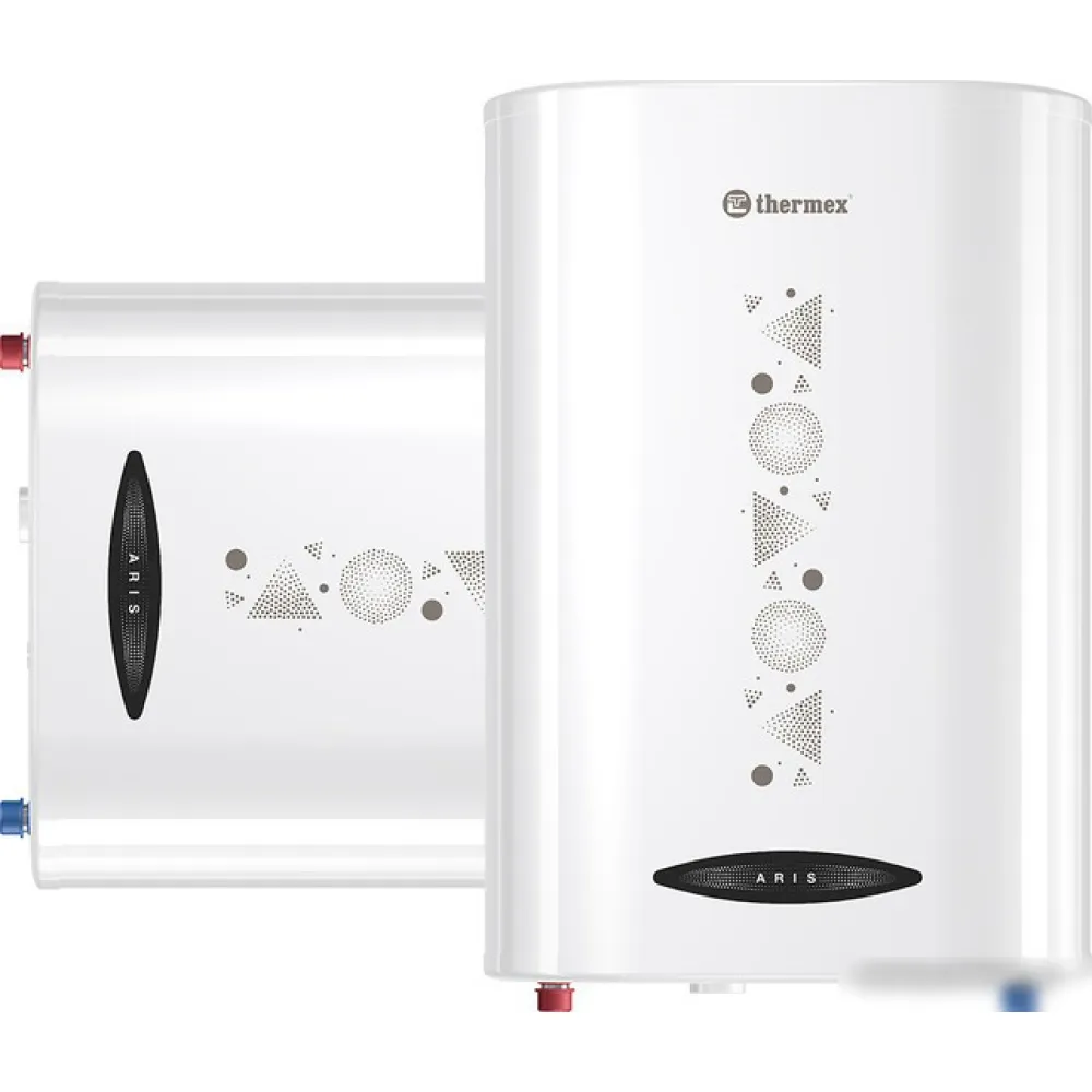 | Информация | Линейка плоских водонагревателей Thermex Aris – это изящное и надежное решение в вопросе горячего водоснабжения в квартире, на даче или офисе. Водонагреватель с вертикальной или горизонтальной установкой можно разместить на стене, используя доступное пространство как можно эффективнее. Сухой нагревательный элемент не только обеспечивает стабильный и мощный нагрев, но и прослужит дольше и надежнее. А привлекательный внешний корпус водонагревателя станет украшением вашего интерьера. Компактный размер и универсальный монтаж. Водонагреватели серии Aris изготовлены по технологии Double Tank, благодаря которой корпус бака становится максимально плоским и одновременно вместительным, поскольку полезный объем не теряется. Глубина корпуса в серии Aris составляет от 25 до 29 мм. Такой водонагреватель проще разместить в помещении, а также можно спрятать в нишу. Помимо узкого корпуса, водонагреватели этой серии можно повесить на стену как в вертикальном, так и горизонтальном исполнении, что еще больше способствует экономии пространства. Надежное защитное покрытие. Внутренние стенки бака покрыты Биостеклофарфором, обеспечивающим впечатляющую стойкость к коррозии, которая является одной из главных проблем долгой и интенсивной эксплуатации водонагревателей. Покрытие вступает в высокую адгезию со стенками бака, что позволяет ему при нагреве и остывании расширяться вместе с баком без дальнейшего образования трещин. Сухой и быстрый нагрев. Внутри Thermex Aris установлен нагревательный элемент в специальной защитной колбе из нержавеющей стали – InoxDryHeat. Общая мощность ТЭНа для моделей от 50 до 100 литров составляет 2000 Вт, а для модели 30 литров – максимальная мощность 1500 Вт. Преимущество «сухого» нагрева в том, что сам нагревательный элемент надежно защищен от воды и химических составов, находящихся в ней. Это позволяет сохранить работоспособность ТЭНа надолго. В дополнение к этому, при выходе из строя нагревательного элемента, его всегда можно заменить без слива воды из бака. Скорость нагрева составляет от 50 до 135 минут в зависимости от объема бака. Интуитивно-понятное управление. Механический регулятор на нижней крышке бака отвечает регулировку температуры. На терморегуляторе предусмотрен режим Eco, который обеспечивает оптимальное соотношение температуры нагрева и экономии ресурса работы водонагревателя. Справа от регулятора расположены кнопки переключения режимов мощности. В моделях от 50 до 100 литров выбор мощности варьируется: 800, 1200 и 2000 Вт; а в модели объемом 30 литров – 750 и 1500 Вт. Механическое управление более надежное в вопросе сохранения настроек нагрева: в случае перепадов электроэнергии, пользователю не понадобится повторно запускать оборудование и выстраивать режимы мощности. Экономия на повторном нагреве. Для предотвращения теплопотерь, между стенками бака расположена термоизоляционная пена – Super Foam. Она позволяет сохранять воду внутри бака горячей надолго, поэтому пользователю не нужно постоянно запускать повторный нагрев, что позволит сохранить время и средства. Гарантия безопасного использования. В комплекте поставки к каждой модели Thermex Aris идет устройство защитного отключения, которое срабатывает при утечке электрического тока, защищая пользователя от поражения, а также предохранительный клапан для сброса 