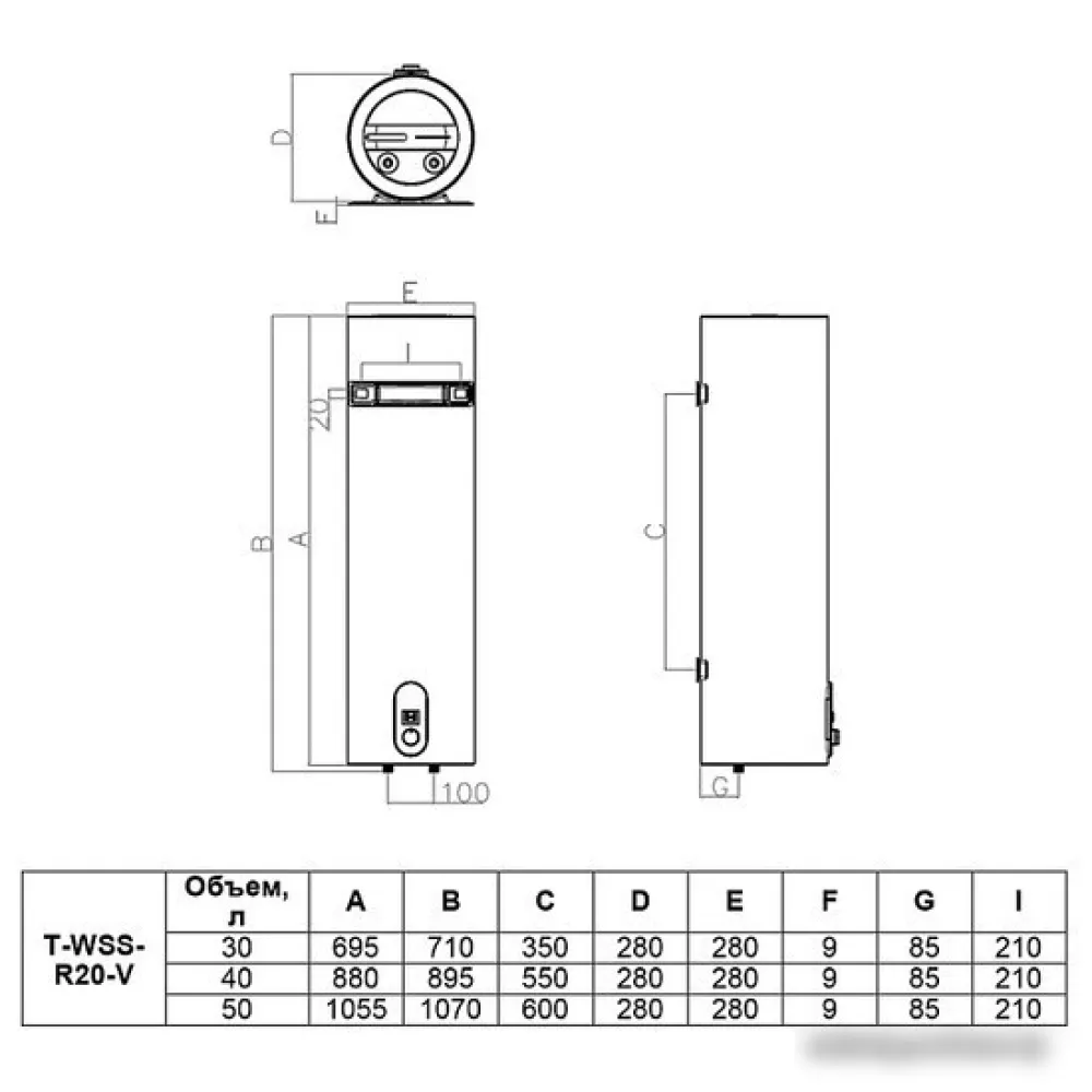 вертикальный, 30 л, 1.5 кВт, время нагрева 40 мин, 71x28x28 см