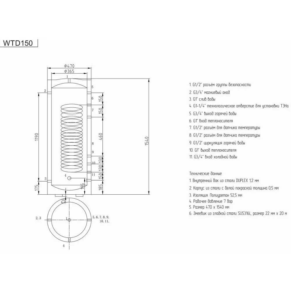Бойлер косвенного нагрева Viena WTD 150